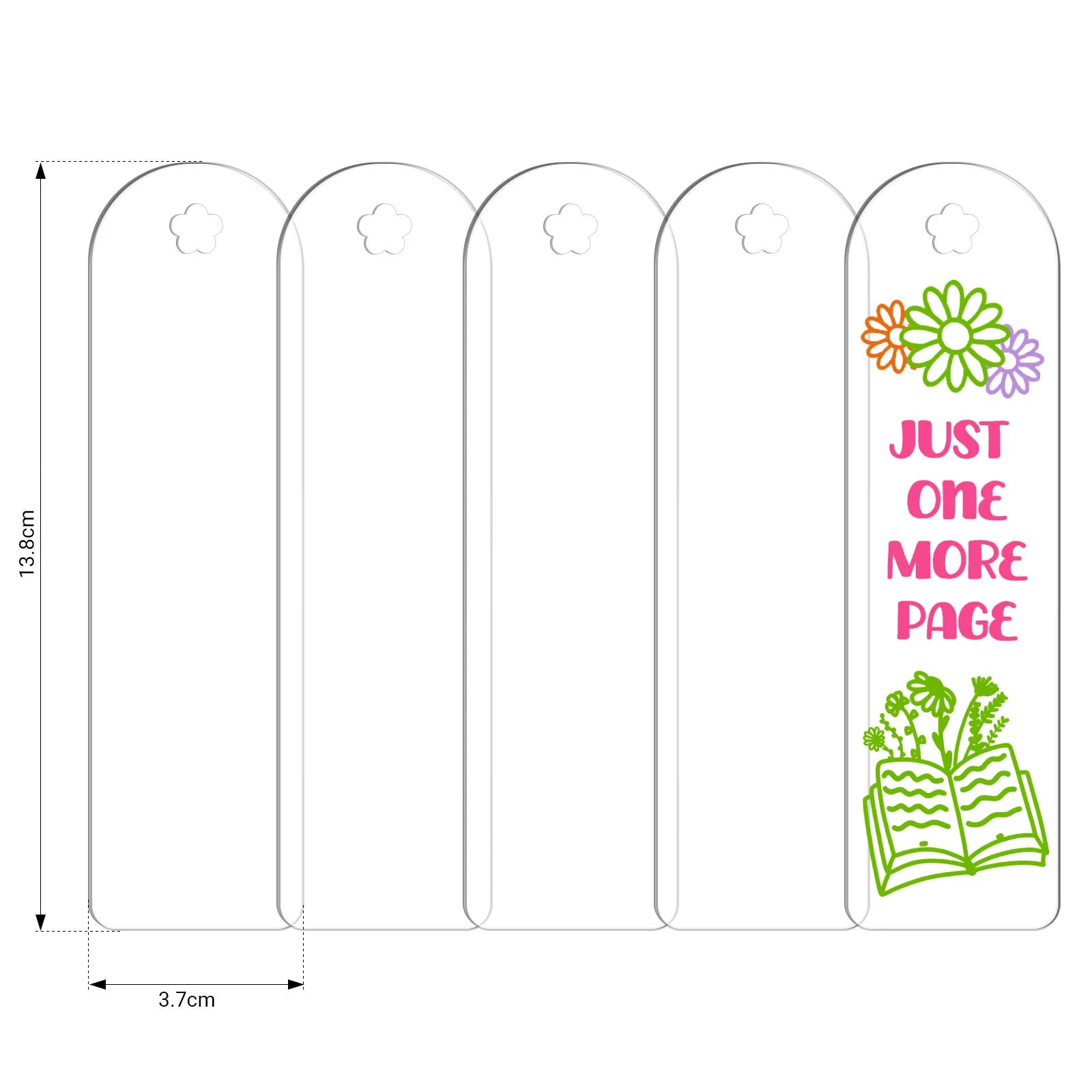 Clear and glitter Acrylic Bookmark craft blanks 5 in a pack